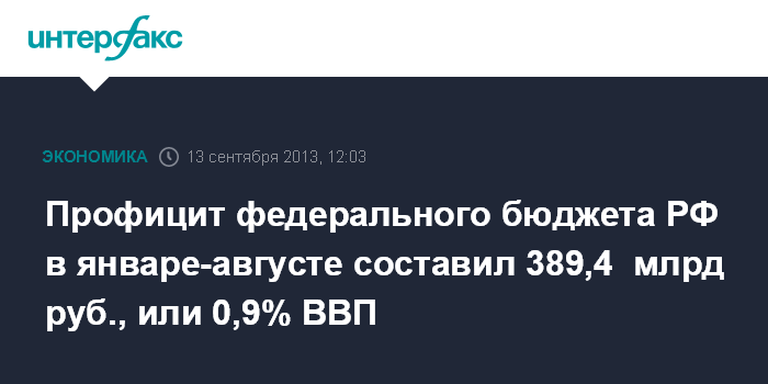 Профицит федерального бюджета РФ в январе-августе составил 389,4 млрд руб., или 0,9% ВВП