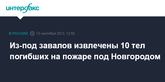 Великий Новгород. 13 сентября. INTERFAX.RU - На месте пожара в корпусе психоневрологического интерната в деревне Лука Маловишерского района Новгородской области обнаружены тела 10 человек.