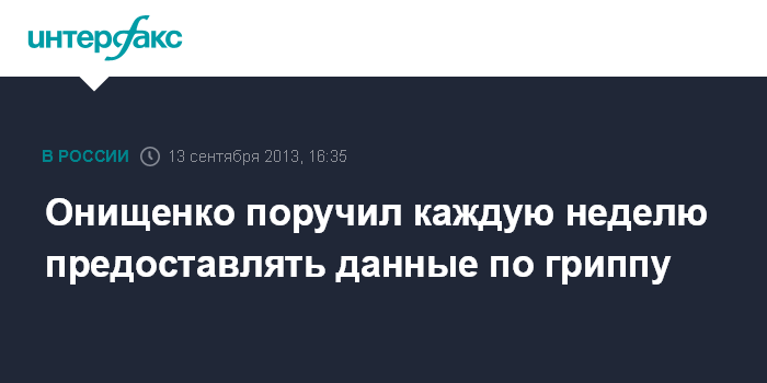 "В целях проведения мониторинга эпидемиологической ситуации по гриппу и ОРВИ в РФ в эпидсезоне 2013-2014 Роспотребнадзор просит обеспечить еженедельное представление информации о заболеваемости гриппом и ОРВИ среди совокупного населения и по возрастным группам в целом по субъекту РФ и по центральному городу субъекта", - говорится в письме Онищенко.