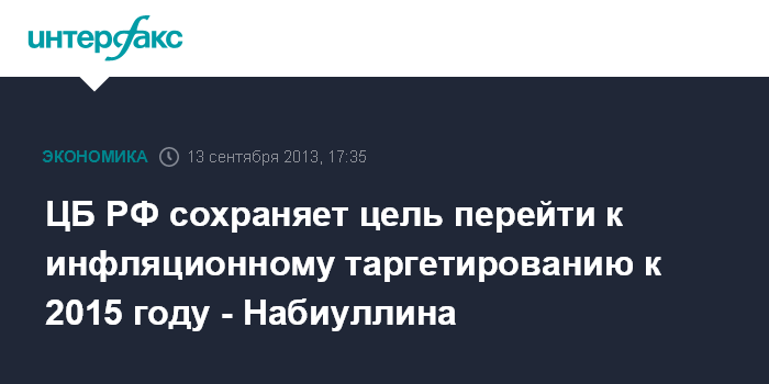 ЦБ РФ сохраняет цель перейти к инфляционному таргетированию к 2015 году - Набиуллина