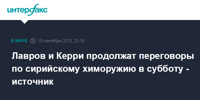 Женева. 13 сентября. ИНТЕРФАКС - Переговоры между Россией и США по проблеме химического оружия в Сирии будут продолжены в Женеве в субботу.