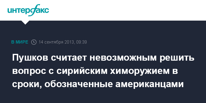 Москва. 14 сентября. INTERFAX.RU - Глава думского комитета по международным делам Алексей Пушков заявил, что требование американской стороны передать химоружие в Сирии под международный контроль за 2-3 недели невыполнимо.