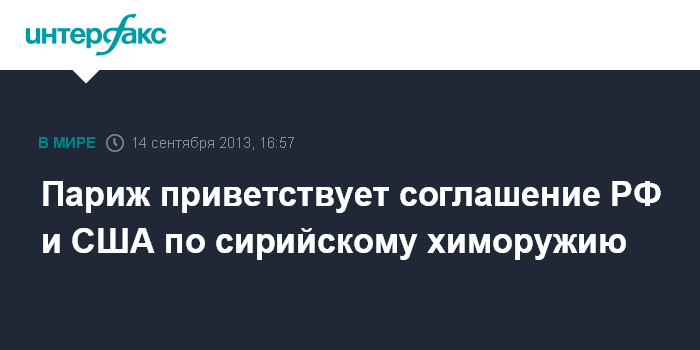 Париж приветствует соглашение РФ и США по сирийскому химоружию