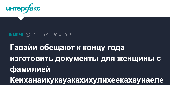 Гавайи обещают к концу года изготовить документы для женщины с фамилией Кеиханаикукауакахихулихеекахаунаеле
