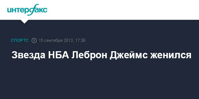 Москва. 15 сентября. INTERFAX.RU - Форвард клуба НБА "Майами" Леброн Джеймс женился на своей давней подруге Саванне Бринсон.