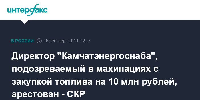 Петропавловск-Камчатский. 16 сентября. ИНТЕРФАКС-ДАЛЬНИЙ ВОСТОК - Директор ГУП "Камчатэнергоснаб", которого подозревают в заключении фиктивной сделки на поставку в регион около 2 тыс. тонн угля, арестован.