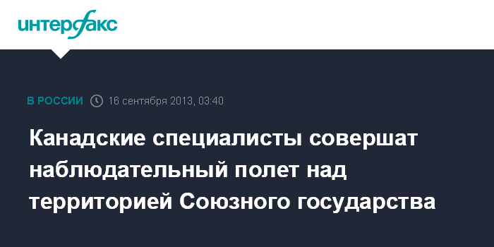Канадские специалисты совершат наблюдательный полет над территорией Союзного государства