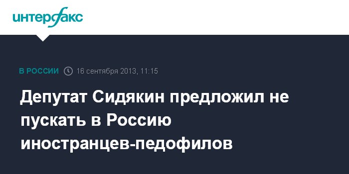 Депутат Сидякин предложил не пускать в Россию иностранцев-педофилов