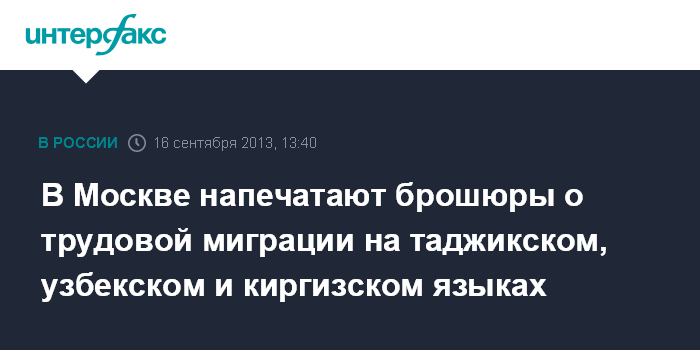 В Москве напечатают брошюры о трудовой миграции на таджикском, узбекском и киргизском языках