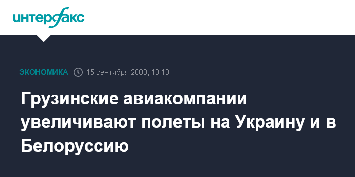 Москва. 15 сентября. INTERFAX.RU – Грузинские авиакомпании увеличивают частоту полетов на Украину и Белоруссию.