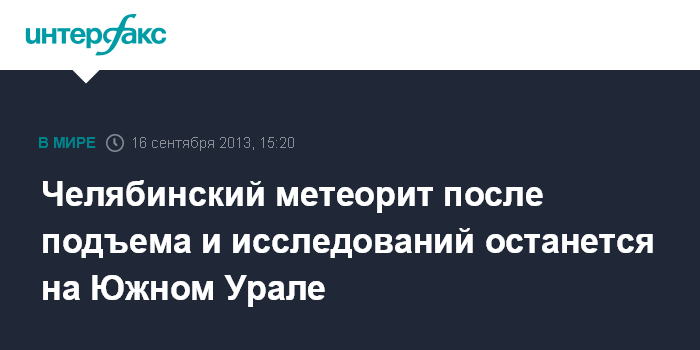 Челябинский метеорит после подъема и исследований останется на Южном Урале