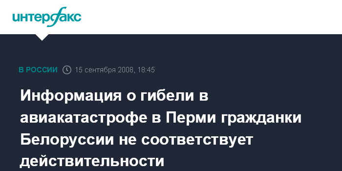 Информация о гибели в авиакатастрофе в Перми гражданки Белоруссии не соответствует действительности