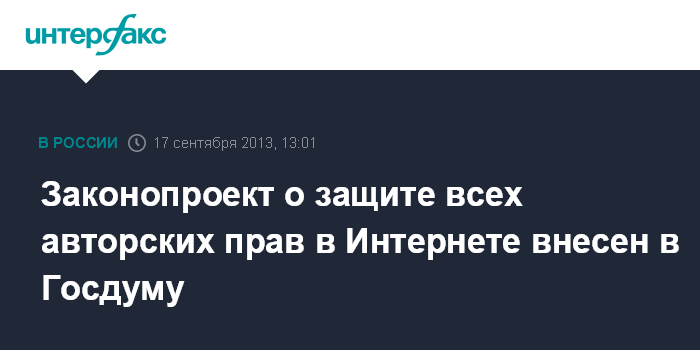 Законопроект о защите всех авторских прав в Интернете внесен в Госдуму