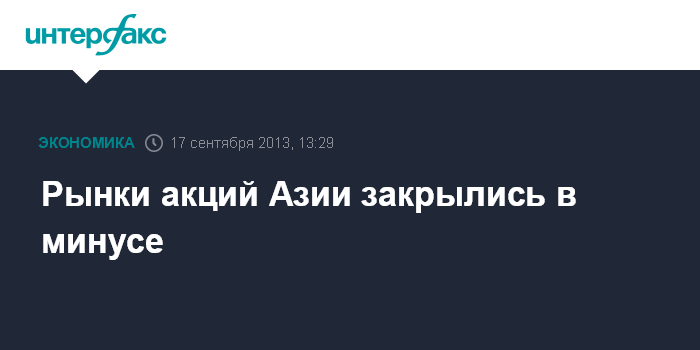 17 сентября. FINMARKET.RU - Фондовые индексы Азиатско-Тихоокеанского региона упали во вторник с достигнутого накануне максимума за 4 месяца, поскольку инвесторы ожидают, что Федеральная резервная система (ФРС) в ближайшие дни примет решение о сворачивании стимулирующих программ, сообщает агентство Bloomberg.