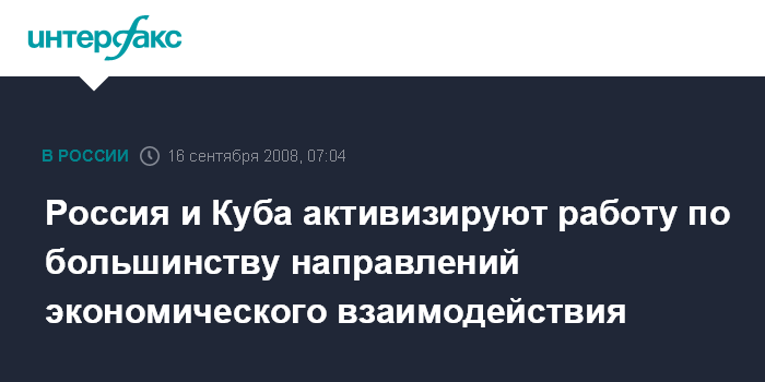 Гавана. 16 сентября. ИНТЕРФАКС - Россия и Куба договорились активизировать свое сотрудничество по большинству экономического взаимодействия, сообщил журналистам по итогам переговоров с кубинской стороной вице-премьер Игорь Сечин, находящийся на Кубе с рабочей поездкой во главе делегации правительства деловых кругов России во вторник.