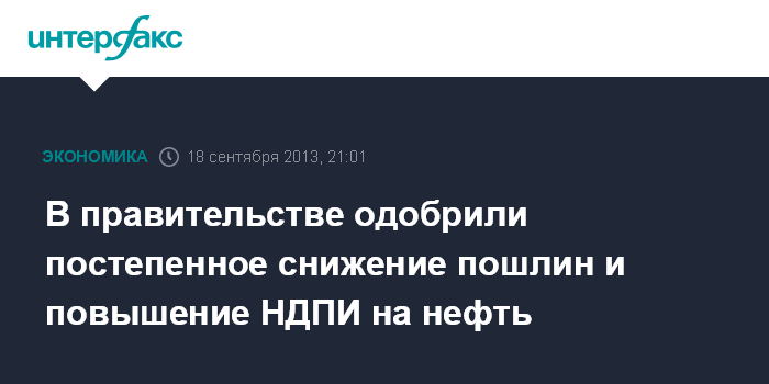 Москва. 18 сентября. INTERFAX.RU - В правительстве России одобрили постепенное снижение экспортных пошлин и повышение НДПИ на нефть, сообщил первый вице-премьер Игорь Шувалов журналистам в среду по итогам заседания правительственной комиссии по бюджетным проектировкам.