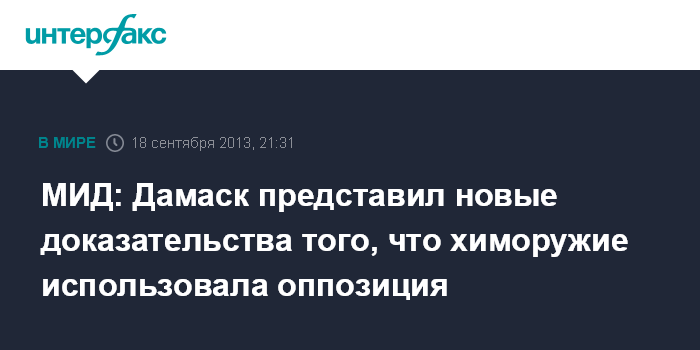 МИД: Дамаск представил новые доказательства того, что химоружие использовала оппозиция