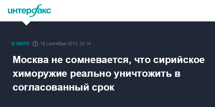 Москва не сомневается, что сирийское химоружие реально уничтожить в согласованный срок