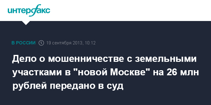 Дело о мошенничестве с земельными участками в "новой Москве" на 26 млн рублей передано в суд