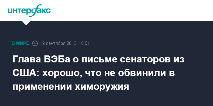 Глава ВЭБа о письме сенаторов из США: хорошо, что не обвинили в применении химоружия