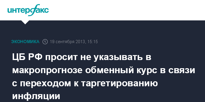 ЦБ РФ просит не указывать в макропрогнозе обменный курс в связи с переходом к таргетированию инфляции