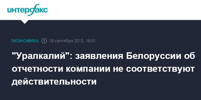 Москва. 19 сентября. INTERFAX.RU - Заявления белорусского руководства относительно текущего состояния компании "Уралкалий" и ее финансовой отчетности не соответствуют действительности, говорится в сообщении компании.