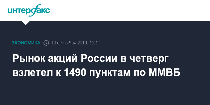 Москва. 19 сентября. INTERFAX.RU - Российский рынок акций в четверг взлетел к 1490 пунктам по индексу ММВБ, обновив максимум с марта на фоне подъема мировых площадок, вызванного решением Федрезерва США сохранить объем программ стимулирования американской экономики в размере $85 млрд в месяц; объем торгов акциями на "Московской бирже" достиг рекорда за год.
