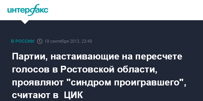 Партии, настаивающие на пересчете голосов в Ростовской области, проявляют "синдром проигравшего", считают в ЦИК