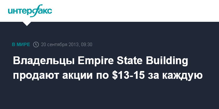 Владельцы Empire State Building продают акции по $13-15 за каждую