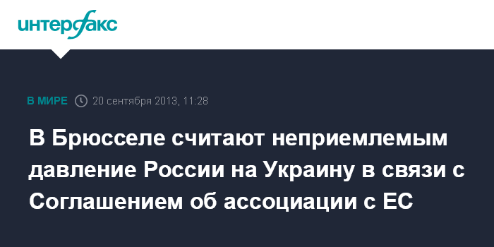 В Брюсселе считают неприемлемым давление России на Украину в связи с Соглашением об ассоциации с ЕС
