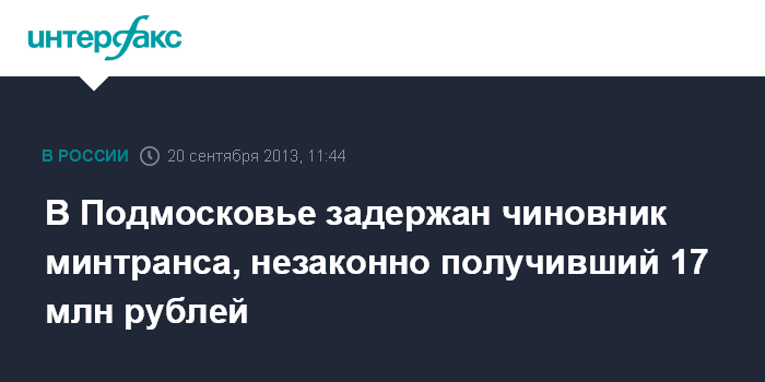 В Подмосковье задержан чиновник минтранса, незаконно получивший 17 млн рублей