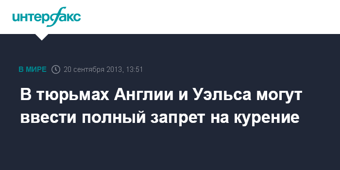 Лондон. 20 сентября. INTERFAX.RU - Власти планируют полностью запретить курение во всех тюрьмах Англии и Уэльса к 2015 году, сообщает британская газета Independent.