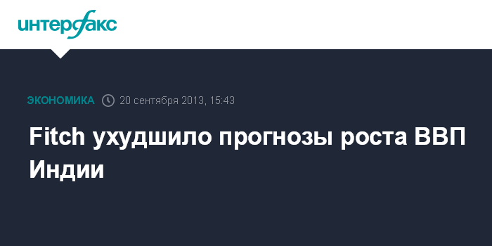 Осенью 2012 года Fitch предполагало, что в 2013 - 2014 фингоду ВВП Индии подскочит на 7%. Резкое изменение прогнозов отражает "все опасности экономических потрясений" в Индии, отмечается в докладе Fitch.