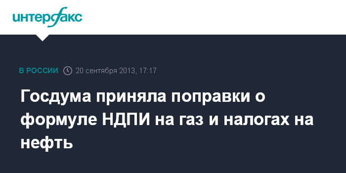 Госдума приняла поправки о формуле НДПИ на газ и налогах на нефть