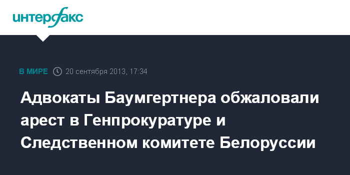 Адвокаты Баумгертнера обжаловали арест в Генпрокуратуре и Следственном комитете Белоруссии