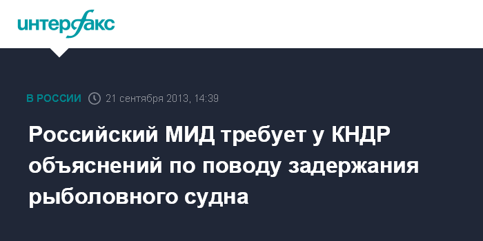Москва. 21 сентября. INTERFAX.RU - МИД России просит у Северной Кореи разъяснений по поводу задержания в минувшую пятницу силами береговой охраны КНДР российской рыболовной шхуны "Алтай" в Японском море.