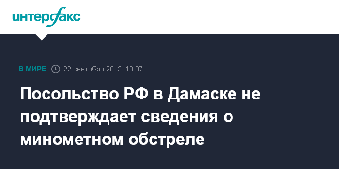 Москва. 22 сентября. INTERFAX.RU - В посольстве РФ в Дамаске не подтвердили информацию о том, что дипмиссия подверглась минометному обстрелу.