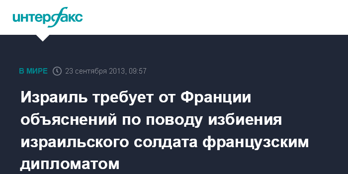Израиль требует от Франции объяснений по поводу избиения израильского солдата французским дипломатом