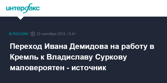 Переход Ивана Демидова на работу в Кремль к Владиславу Суркову маловероятен - источник