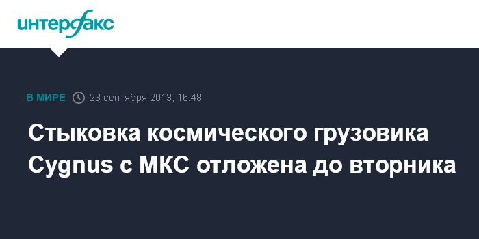 Киев. 23 сентября. INTERFAX.RU - Американская Orbital Sciences Corporation, успешно запустившая в минувшую среду на орбиту грузовой модуль Cygnus при помощи созданной в кооперации с Украиной новой ракеты-носителя (РН) среднего класса Аntares, из-за технических сбоев в программной обеспечении грузовика, отложила намеченную на воскресенье стыковку космического корабля с МКС до вторника, сообщает компания.