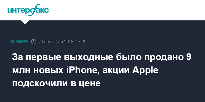 За первые выходные было продано 9 млн новых iPhone, акции Apple подскочили в цене
