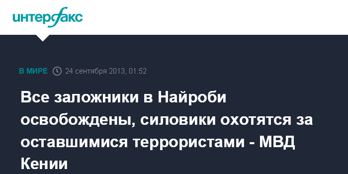 Все заложники в Найроби освобождены, силовики охотятся за оставшимися террористами - МВД Кении