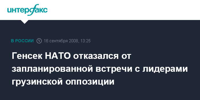 Москва 16 сентября. INTERFAX.RU - Генеральный секретарь НАТО Яаап де Хооп Схеффер, продолжающий визит в Грузию, не встретился во вторник с представителями грузинской оппозиции.