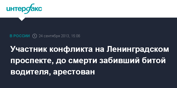 Участник конфликта на Ленинградском проспекте, до смерти забивший битой водителя, арестован