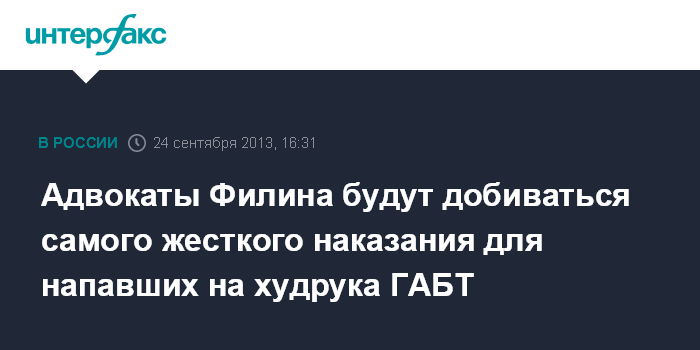 Москва. 24 сентября. INTERFAX.RU - Защитники художественного руководителя балета Большого театра Сергея Филина будут настаивать на максимальном наказании для фигурантов дела о нападении на него.