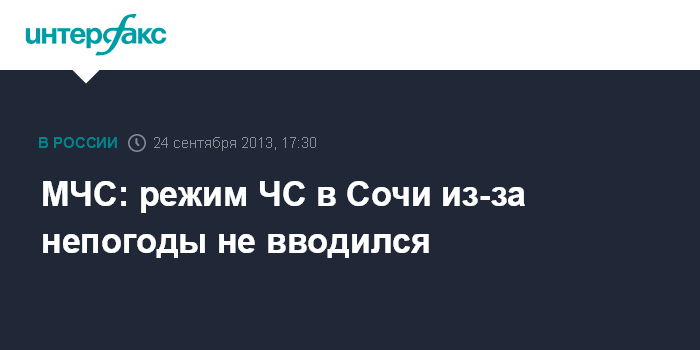 Ранее "Интерфаксу" в экстренных службах региона сообщили, что в Сочи введен режим чрезвычайной ситуации в связи с непогодой. В городе звучат сирены. Людей просят не выходить на улицы и оставаться дома, сообщил собеседник агентства.