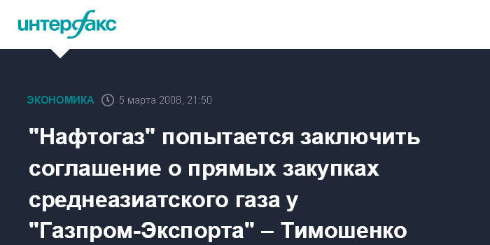 "Нафтогаз" попытается заключить соглашение о прямых закупках среднеазиатского газа у "Газпром-Экспорта" – Тимошенко
