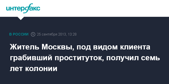 Москва. 25 сентября. INTERFAX.RU - Москвич приговорен к семи годам заключения за разбойные нападения на проституток, принимавших клиентов на дому, сообщает столичная прокуратура в среду.