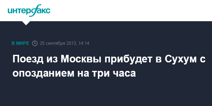 Сухум. 25 сентября. INTERFAX.RU - Движение поезда Москва - Сухум, приостановленное из-за упавших опор высоковольтной передачи, возобновилось.