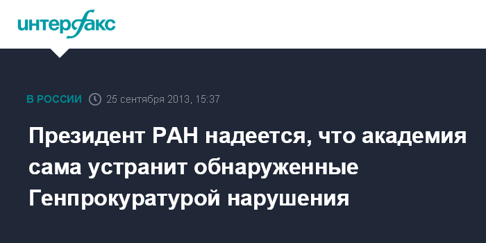 Президент РАН надеется, что академия сама устранит обнаруженные Генпрокуратурой нарушения